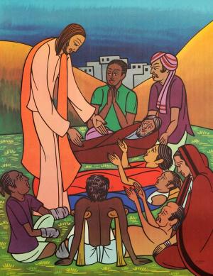 फिर येशु जी और उनके चेले गलील के समुद्र की ओर गये। उनके पीछे एक बड़ी भीड़ आ गयी, जिसमें इस देश के चारों दिशाओं के लोग थे, क्योंकि यह समाचार फैल चुका था कि येशु जी बीमारों को अच्छा करते हैं। इसलिये बीमार लोग एक-दूसरे से आगे निकलते हुए येशु जी के पास आ रहे थे, कि वे उनको छू कर अच्छे हो सकते हैं। भीड़ से दबने से बचने के लिये येशु जी ने अपने शिष्यों से कहा, “एक नाव तैयार करो, जिसमें मैं बैठ सकूं।”
